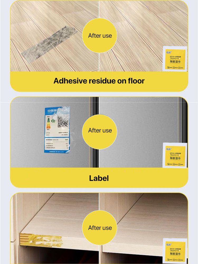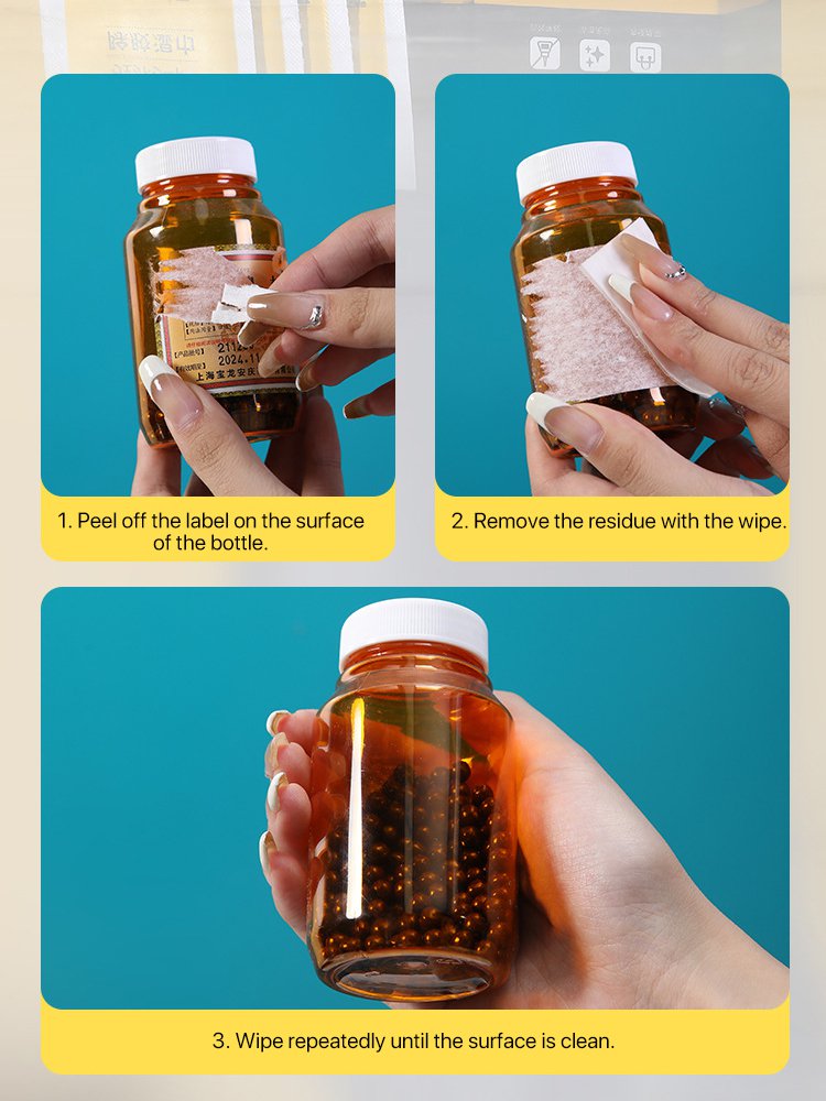 Multi-functional instant label and sticker remover wipes