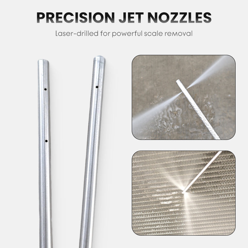 WIDE APPLICATION - Perfectly suited for cleaning the interiors of water heaters, washing machines, pipes, car radiators, and other narrow, confined spaces that are impossible to reach with standard nozzles.