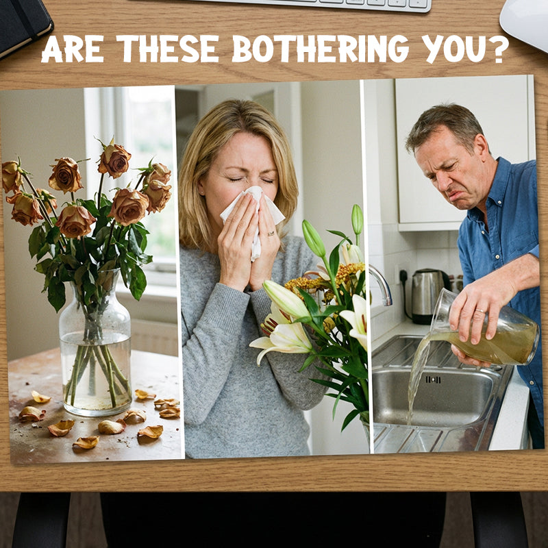 To clean, gently dust the flowers. Avoid washing to maintain their shape and integrity.