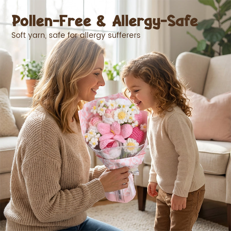 ALLERGY-FREE BEAUTY - Made from soft, high-quality yarn, this bouquet is completely pollen-free. It's the perfect floral gift for friends and loved ones who suffer from allergies, allowing everyone to enjoy its charm.